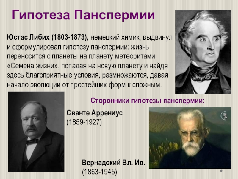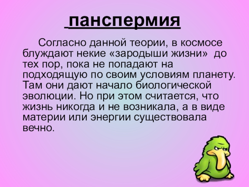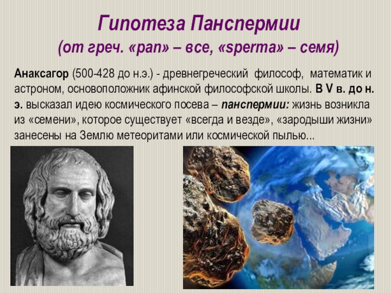 Жизнь занесена из космоса вместе с метеоритами, далее – эволюция.