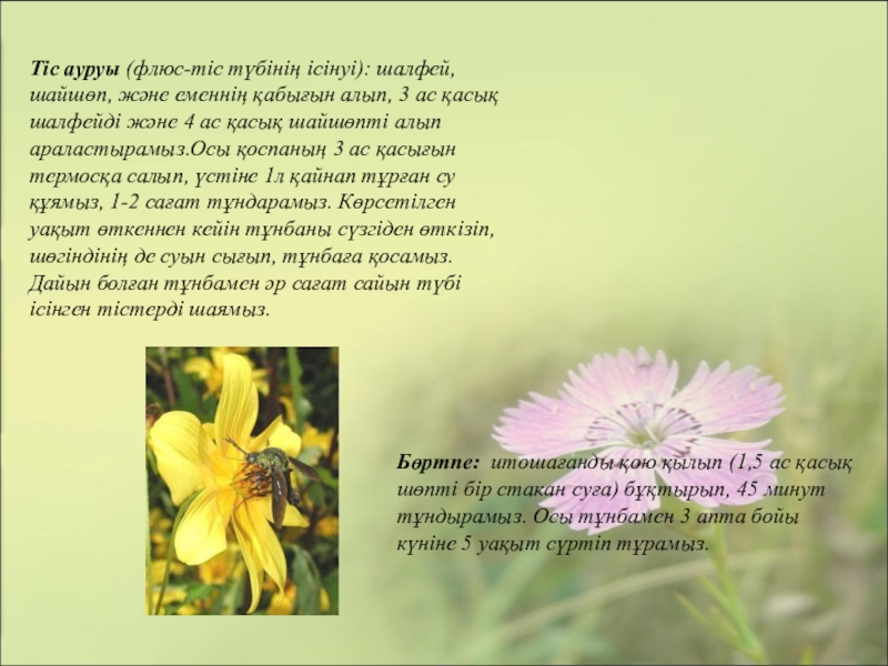 Бөртпе: итошағанды қою қылып (1,5 ас қасық шөпті бір стакан суға) бұқтырып, 45 минут тұндырамыз. Осы тұнбамен 3 апта бойы күніне 5 уақыт сүртіп тұрамыз.