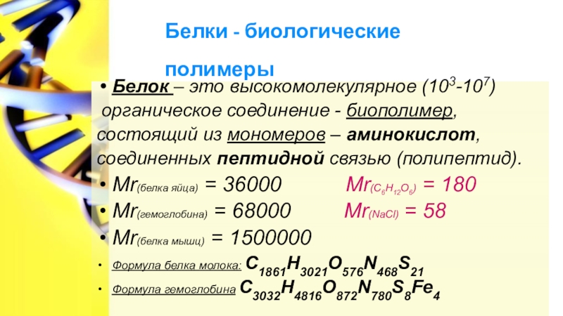 Белки – сложные органические полимеры, мономерами которых являются аминокислоты. В