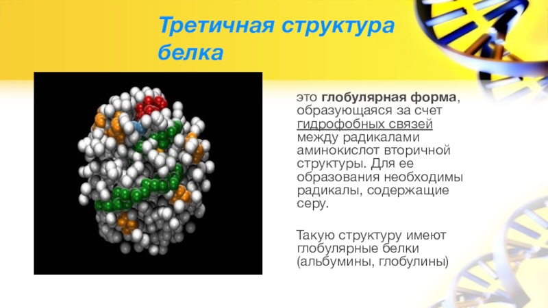 Такую структуру имеют глобулярные белки (альбумины, глобулины)