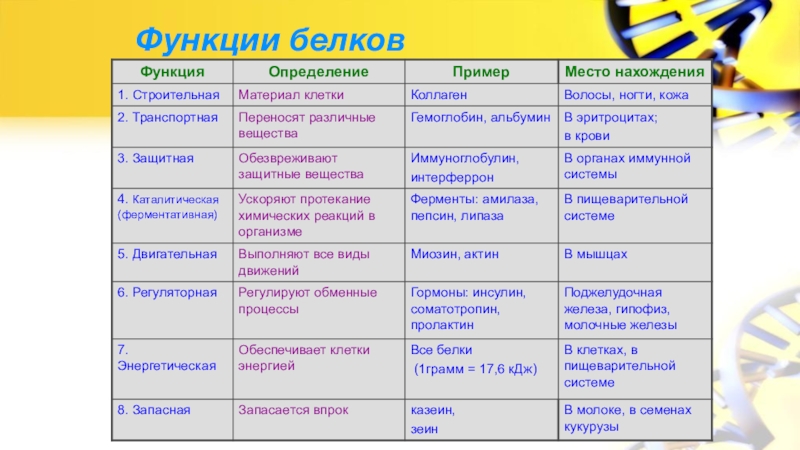 8. Строительная, каталитическая, двигательная, транспортная, защитная, энергетическая