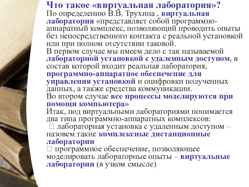 По определению В.В. Трухина , виртуальная лаборатория