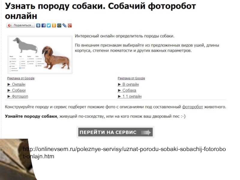 Слайд 32http://onlinevsem.ru/poleznye-servisy/uznat-porodu-sobaki-sobachij-fotorobot-onlajn.htm