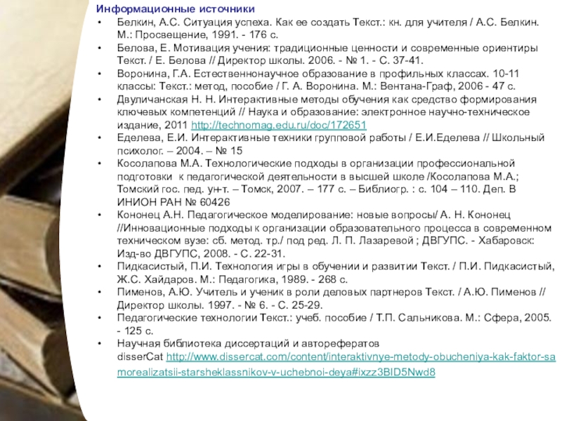 Научная библиотека диссертаций и авторефератов disserCat http://www.dissercat.com/content/interaktivnye-metody-obucheniya-kak-faktor-samorealizatsii-starsheklassnikov-v-uchebnoi-deya#ixzz3BID5Nwd8