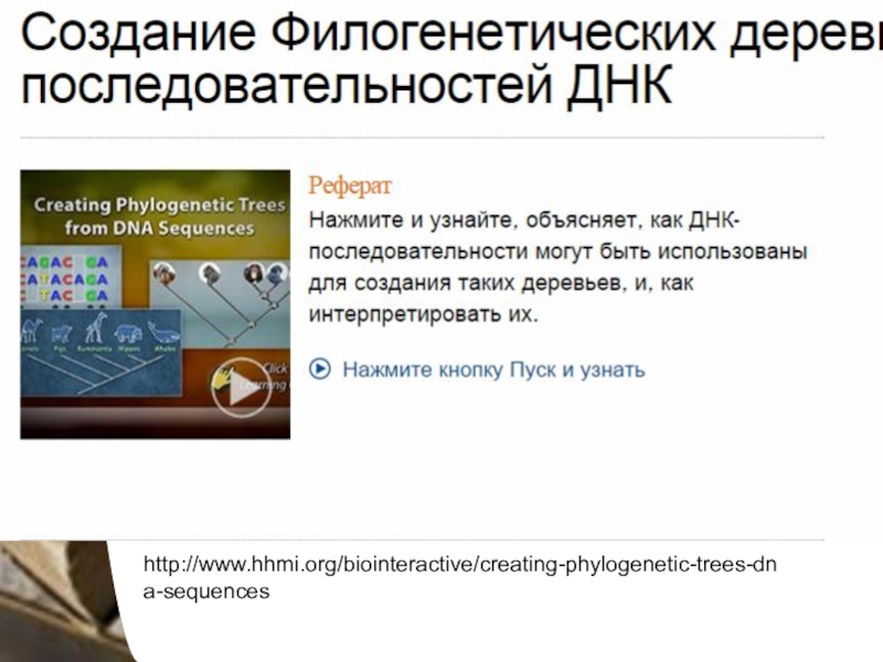 Слайд 10http://www.hhmi.org/biointeractive/creating-phylogenetic-trees-dna-sequences