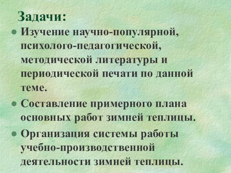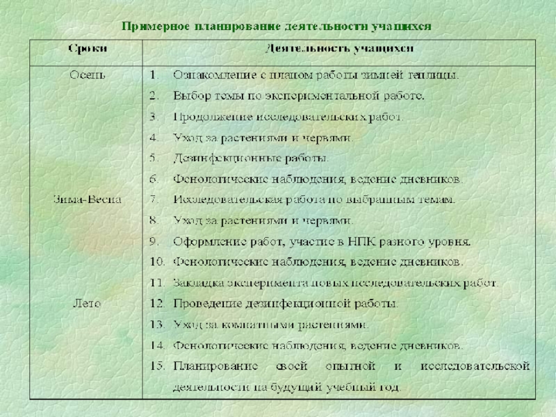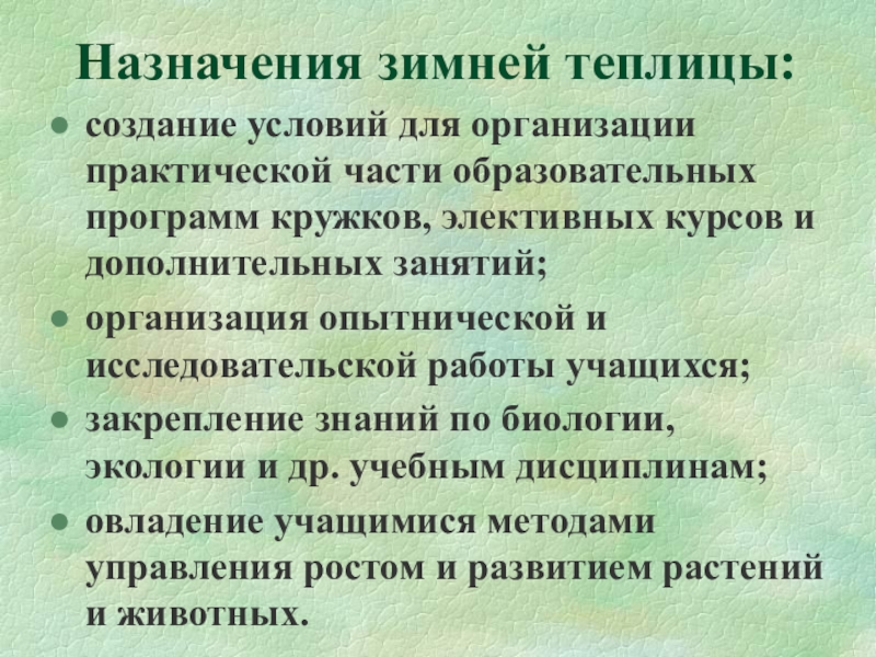 Организация системы работы учебно-производственной деятельности зимней теплицы.