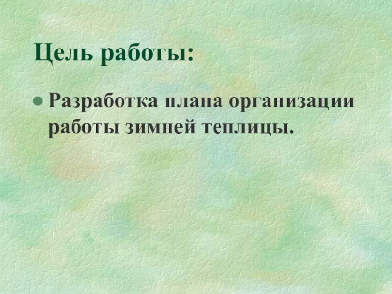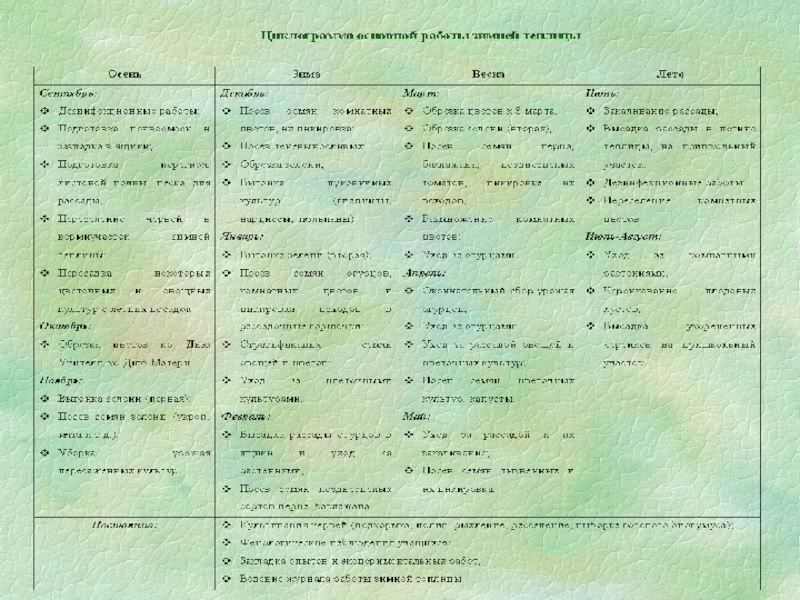 проблеме организации работы зимней теплицы и ее специфических особенностей.