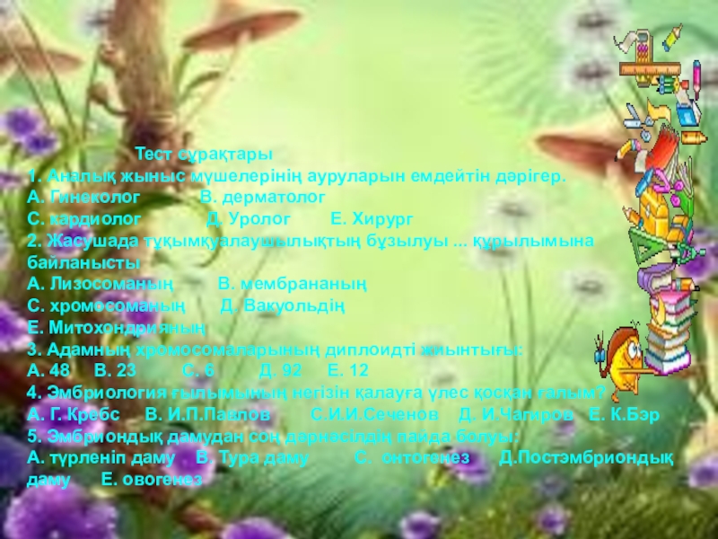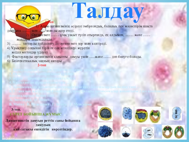 Б. Митоз В. Мезодерма Г. Зигота Ғ. Мезодерма