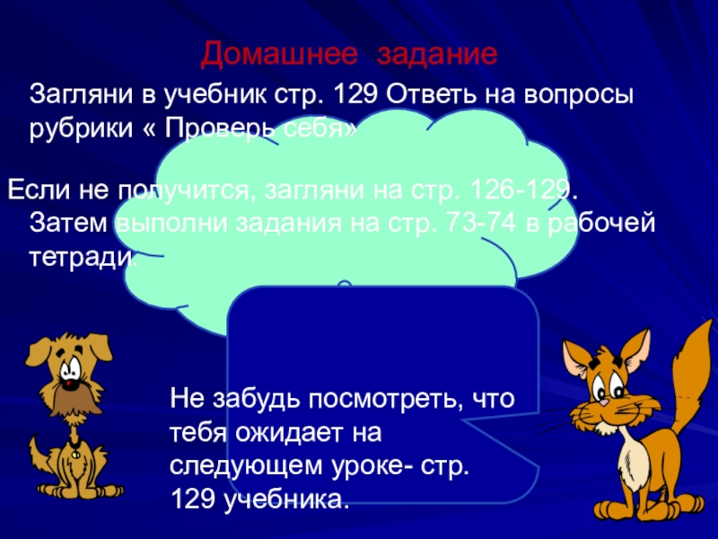 Не забудь посмотреть, что тебя ожидает на следующем уроке- стр. 129 учебника.