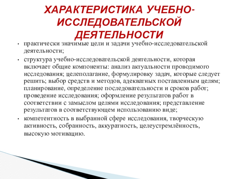 ХАРАКТЕРИСТИКА УЧЕБНО-ИССЛЕДОВАТЕЛЬСКОЙ ДЕЯТЕЛЬНОСТИ