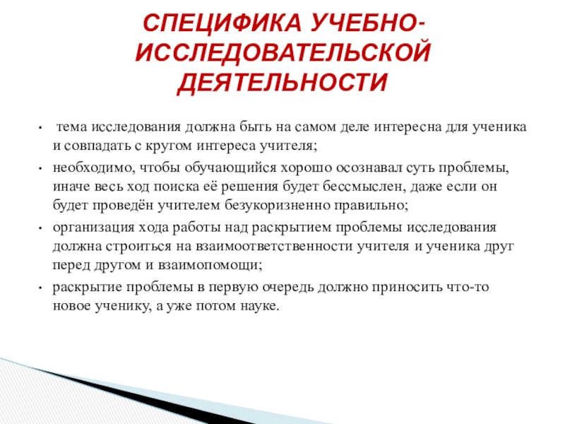 СПЕЦИФИКА УЧЕБНО-ИССЛЕДОВАТЕЛЬСКОЙ ДЕЯТЕЛЬНОСТИ
