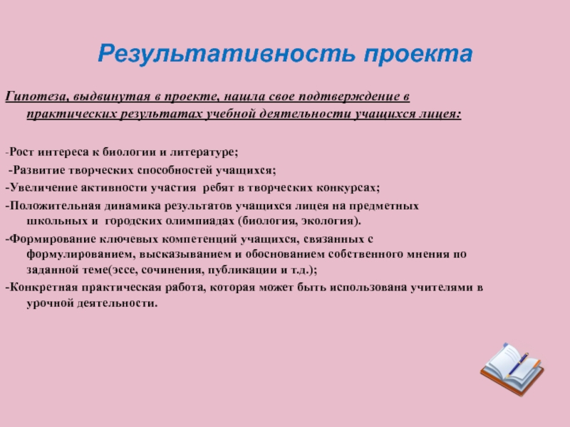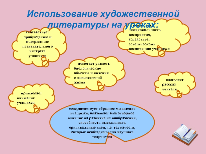 совершенствует образное мышление учащихся, оказывает благотворное влияние на развитие их воображения, способность высказывать оригинальные идеи, т.е. тех качеств, которые необходимы для научного творчества