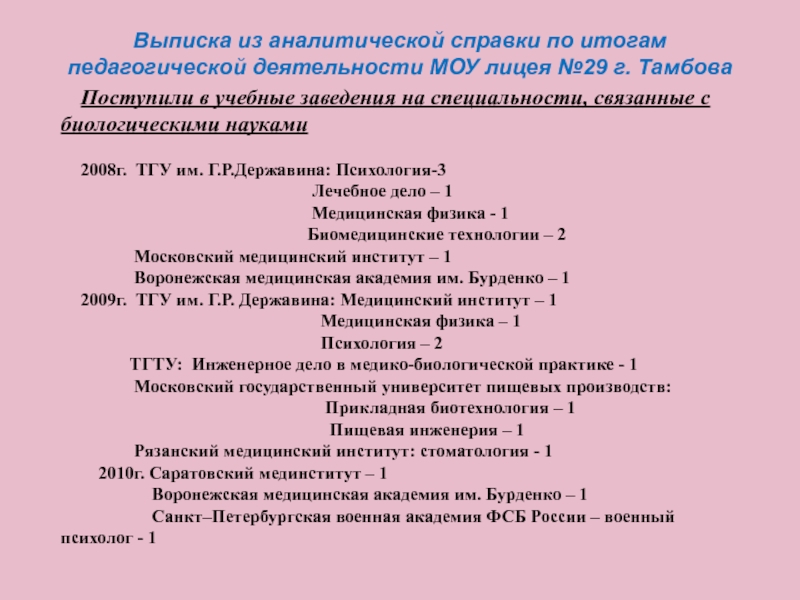 Выписка из аналитической справки по итогам педагогической деятельности МОУ лицея №29 г. Тамбова