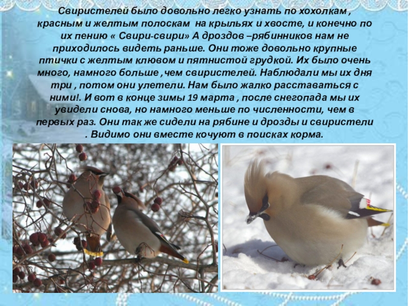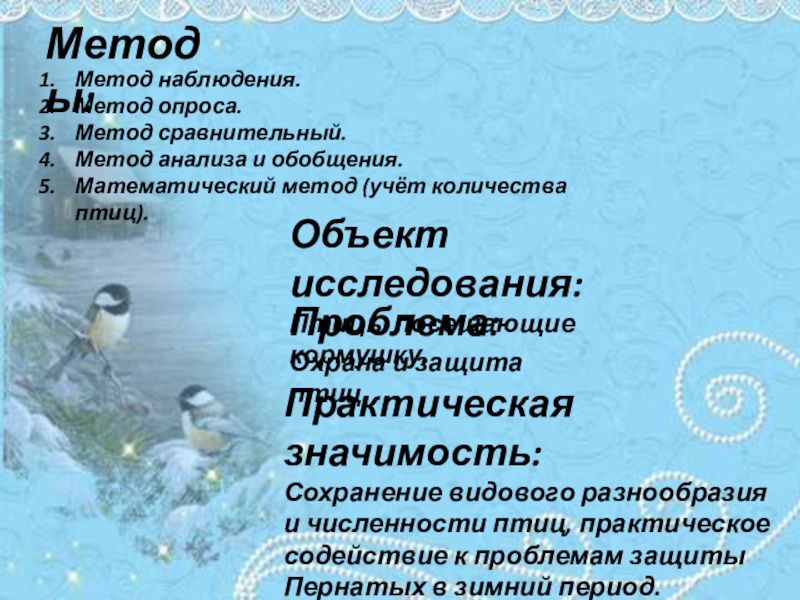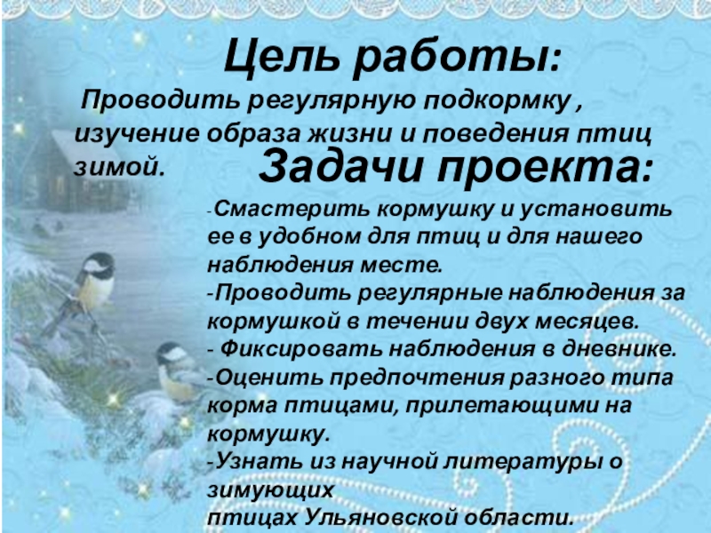 изучение образа жизни и поведения птиц зимой.