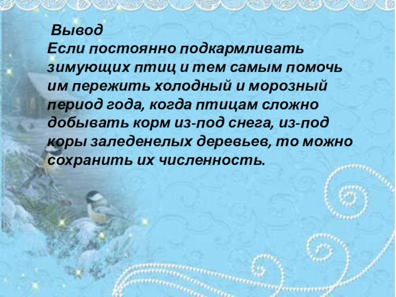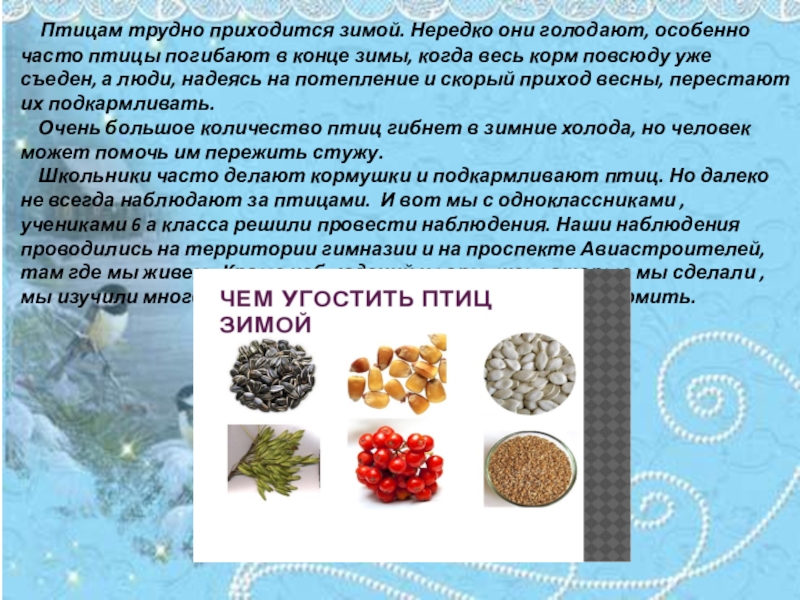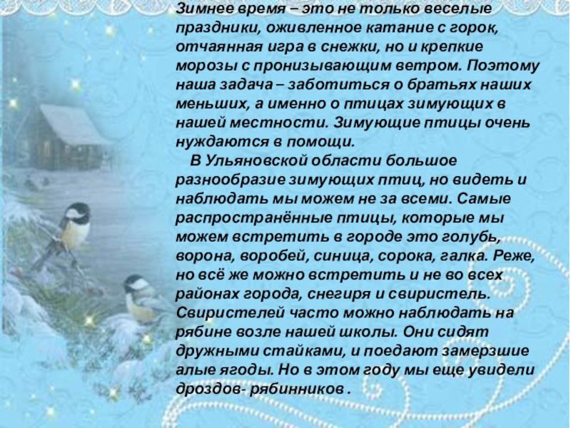 Пернатых в зимний период.