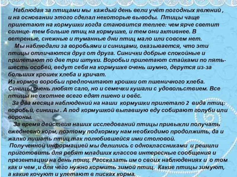 «Наши пернатые гости»