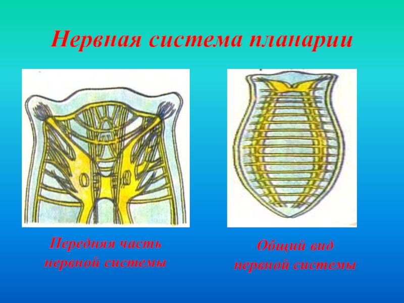 Нервная система планарииПередняя часть нервной системыОбщий вид нервной системы