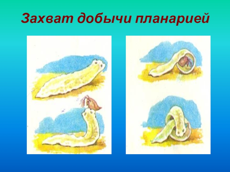 Слайд 3Захват добычи планарией