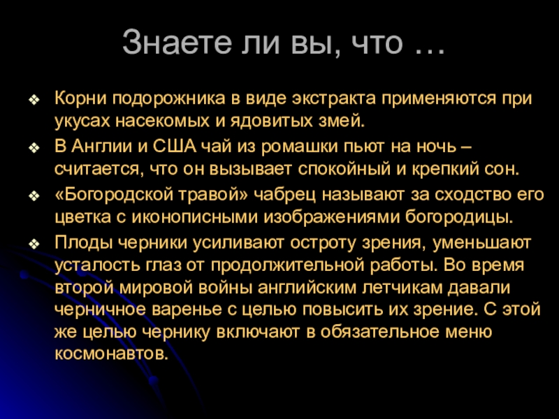 В Англии и США чай из ромашки пьют на ночь – считается, что он вызывает спокойный и крепкий сон.