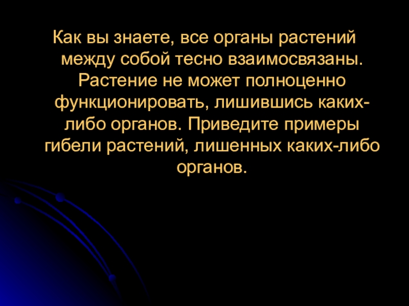 Слайд 3Как вы знаете, все органы растений между собой тесно взаимосвязаны. Растение