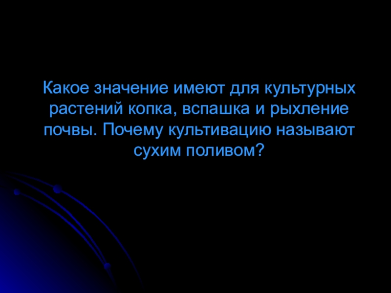 Слайд 10Какое значение имеют для культурных растений копка, вспашка и рыхление почвы.