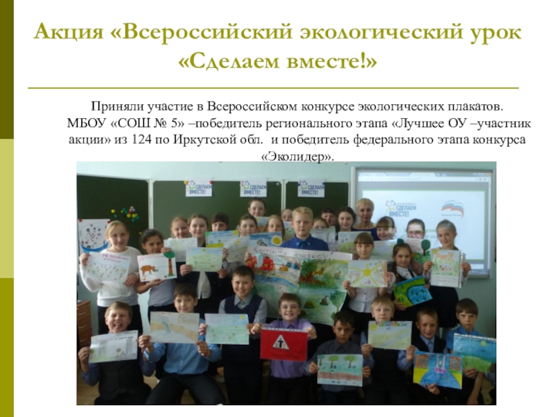 Акция «Всероссийский экологический урок «Сделаем вместе!» Приняли участие в Всероссийском конкурсе экологических плакатов. МБОУ «СОШ № 5»