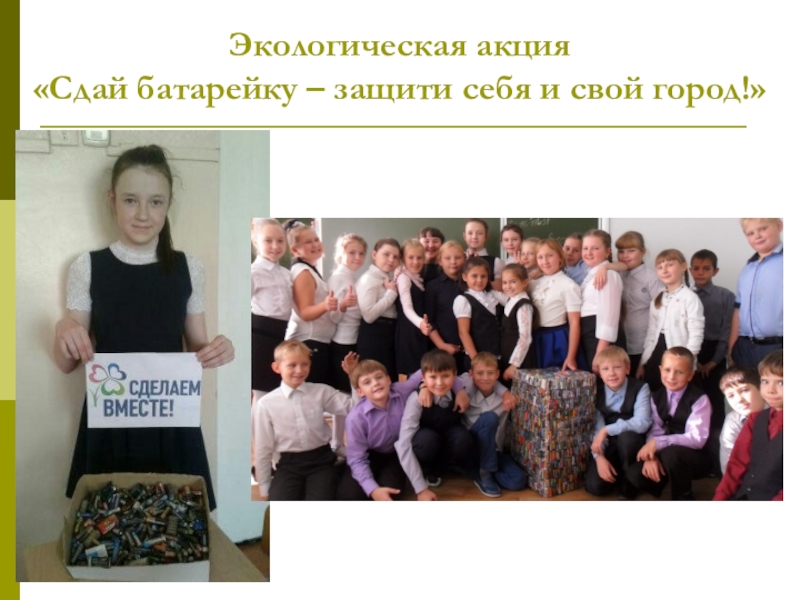 Слайд 4Экологическая акция «Сдай батарейку – защити себя и свой город!»