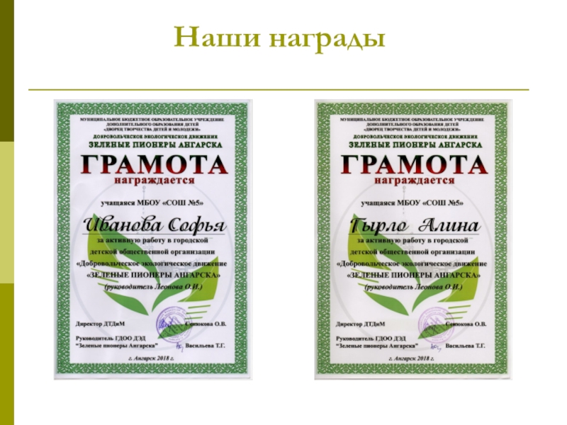 Презентация, доклад на тему Отряд Зелёные пионеры МБОУ СОШ № 5