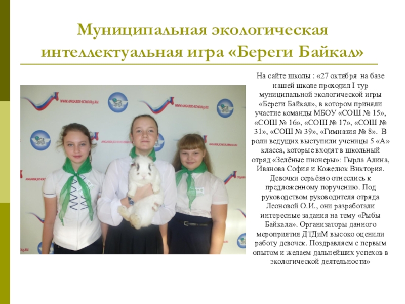 Муниципальная экологическая интеллектуальная игра «Береги Байкал»На сайте школы : «27 октября на базе нашей школе проходил I