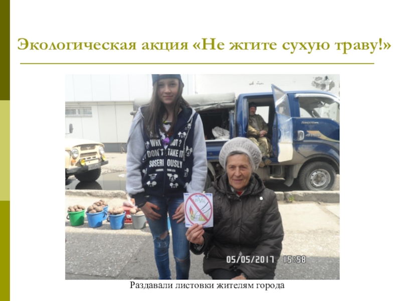 Экологическая акция «Не жгите сухую траву!»Раздавали листовки жителям города