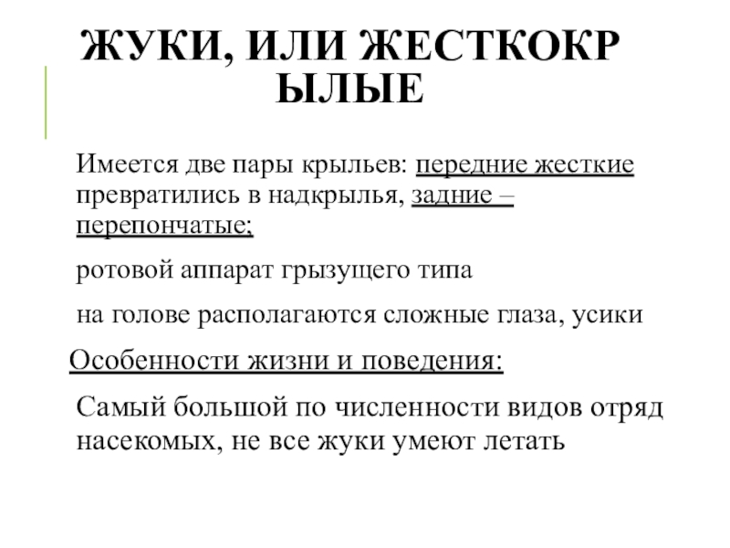 Слайд 8ЖУКИ, ИЛИ ЖЕСТКОКРЫЛЫЕ