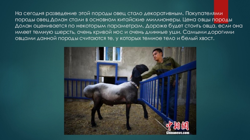 Слайд 7На сегодня разведение этой породы овец стало декоративным. Покупателями породы овец