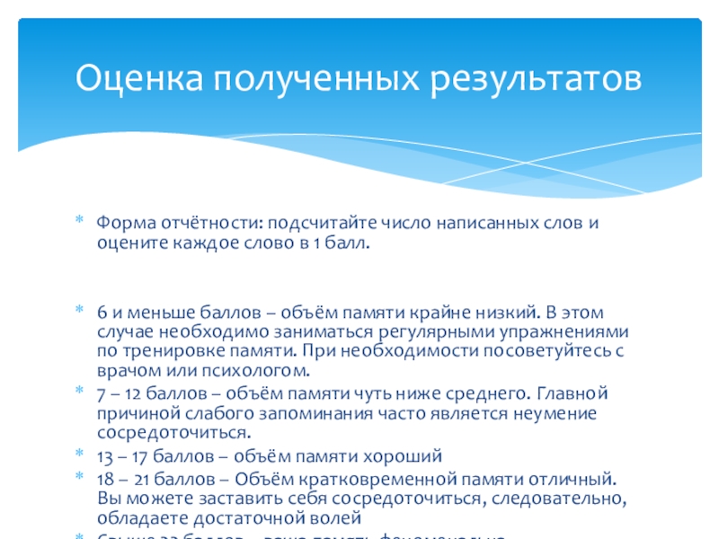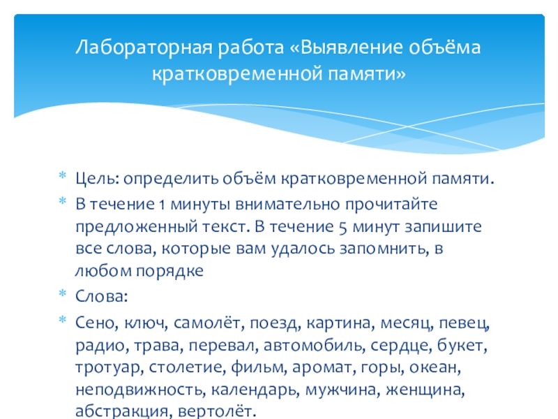 Лабораторная работа «Выявление объёма кратковременной памяти»