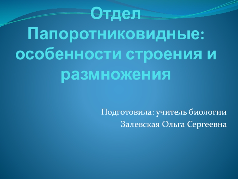 Отдел Папоротниковидные: особенности строения и размноженияПодготовила: учитель биологииЗалевская Ольга Сергеевна