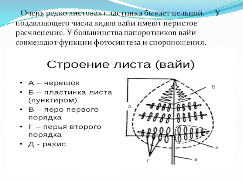 видов вайи имеют перистое расчленение. У большинства папоротников вайи совмещают функции фотосинтеза и спороношения.