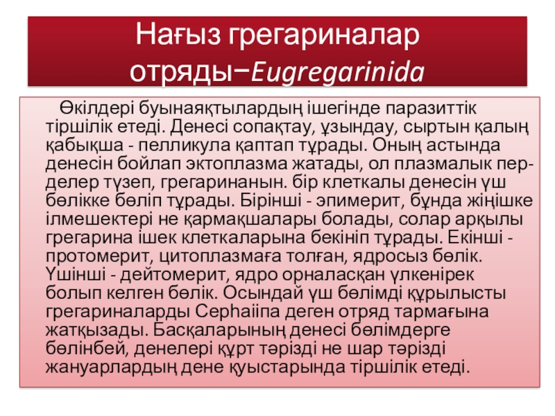 Слайд 19Нағыз грегариналар отряды−Eugregarinida
