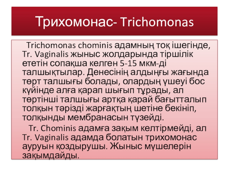 жыныс жолдарында тіршілік ететін сопақша келген 5-15 мкм-ді талшықтылар. Денесінің алдыңғы жағында төрт талшығы болады, олардың үшеуі бос күйінде алға қарап шығып тұрады, ал төртінші талшығы артқа қарай бағытталып толқын тәрізді жарғақтың шетіне бекініп, толқынды мембранасын түзейді.