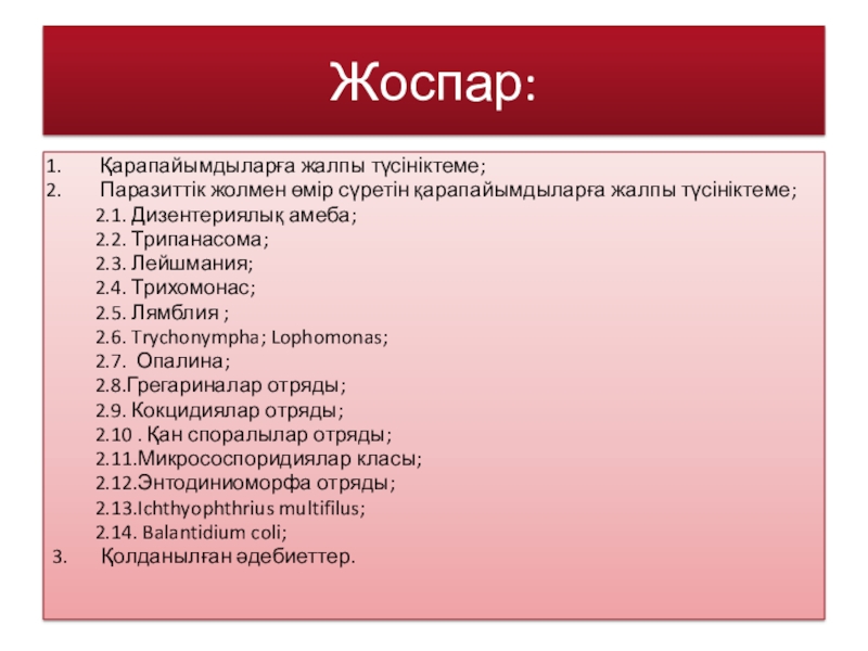 Слайд 1Паразиттік жолмен өмір сүретін қарапайымдылар