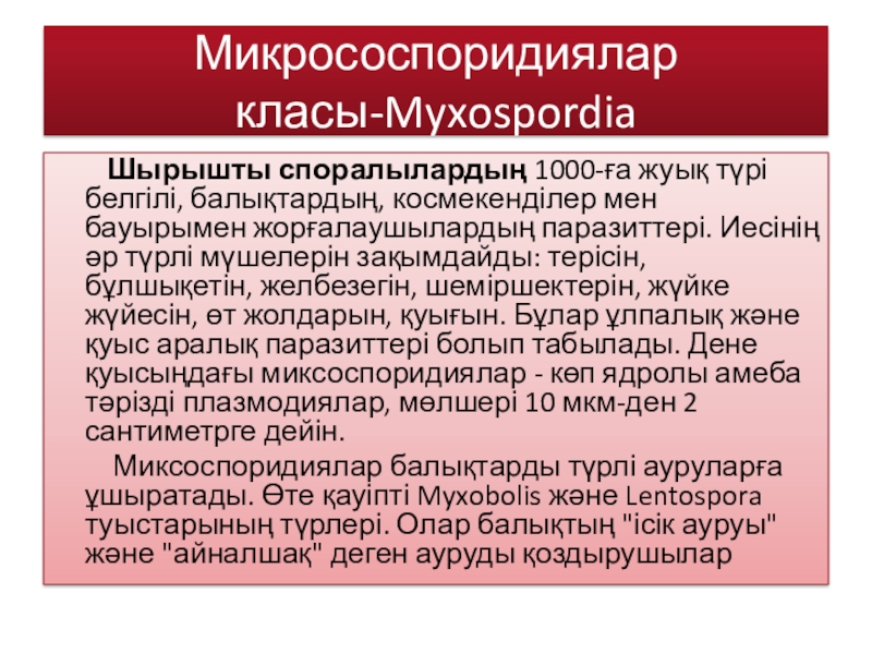 Слайд 25Микрососпоридиялар класы-Myxospordia