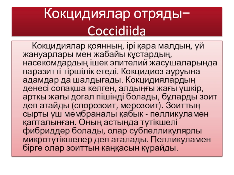 Слайд 21Кокцидиялар отряды− Coccidiida