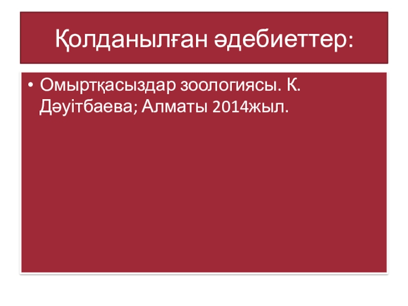 Омыртқасыздар зоологиясы. К. Дәуітбаева; Алматы 2014жыл.