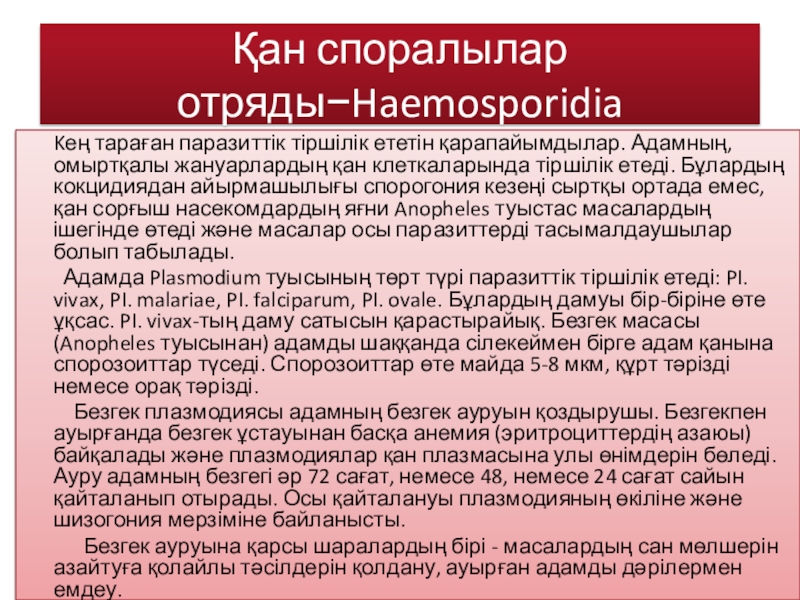 Слайд 23Қан споралылар отряды−Haemosporidia