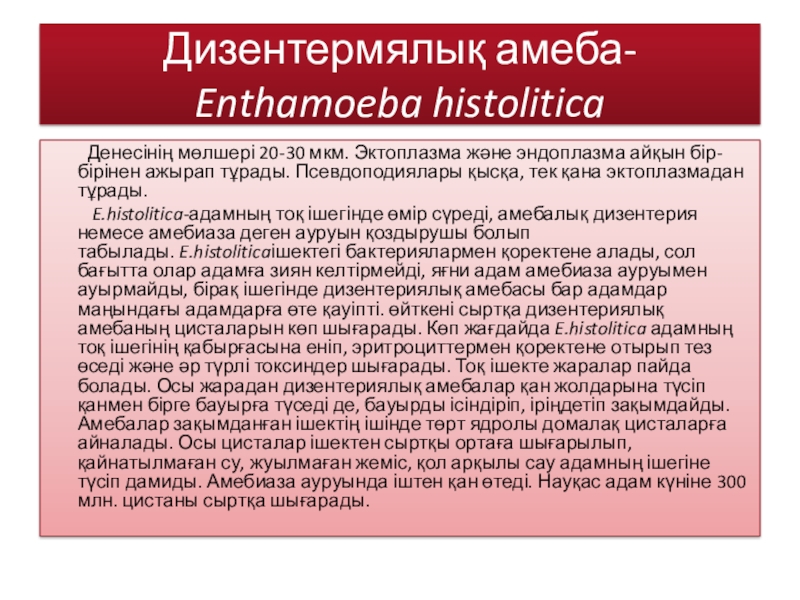 Слайд 5Дизентермялық амеба- Enthamoeba histolitica