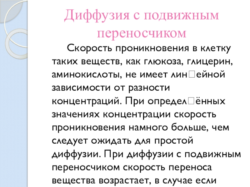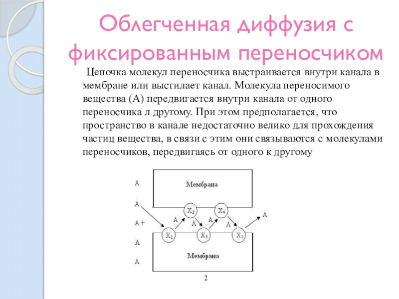 Слайд 19Диффузия с подвижным переносчиком