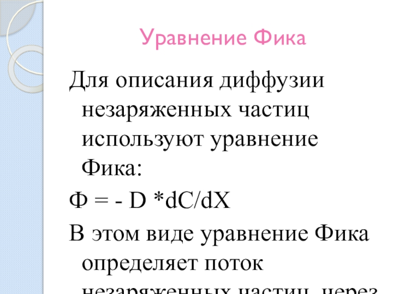 Слайд 13Уравнение Фика