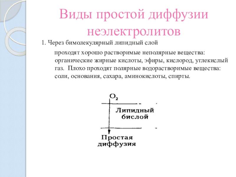 Слайд 8Виды простой диффузии неэлектролитов