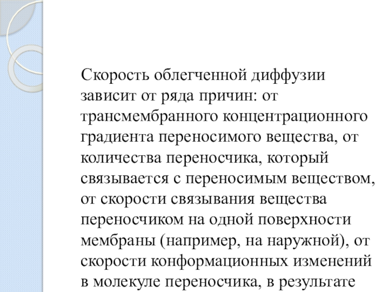 Слайд 17 Скорость облегченной диффузии зависит от ряда причин: от трансмембранного