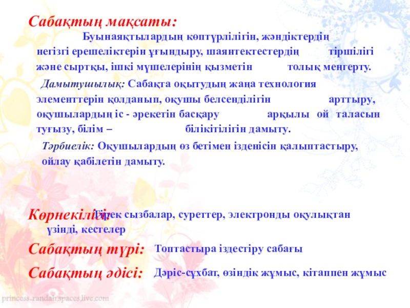Тірек сызбалар, суреттер, электронды оқулықтан үзінді, кестелер