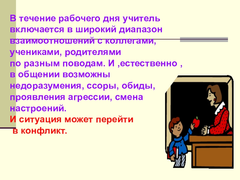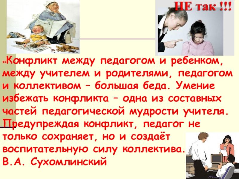 Слайд 4«Конфликт между педагогом и ребенком, между учителем и родителями, педагогом и