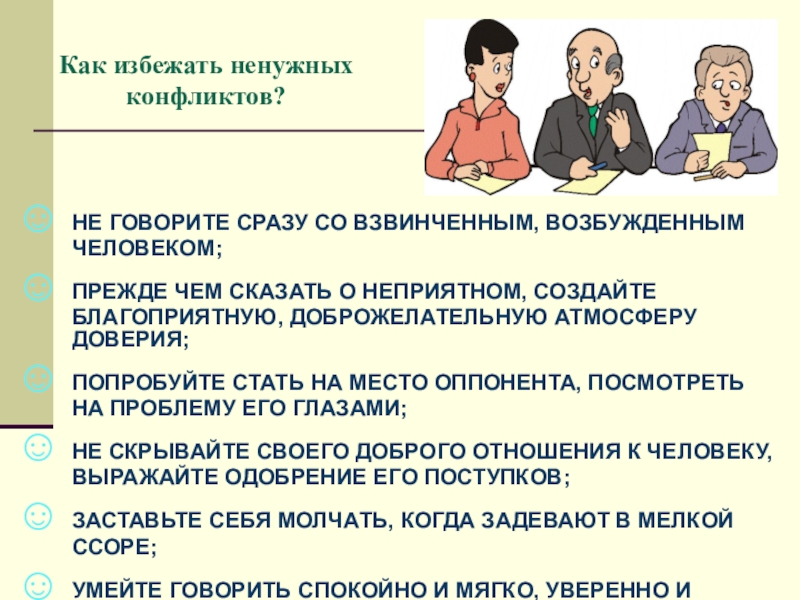 Слайд 13Рекомендации по предупреждению конфликтных ситуаций